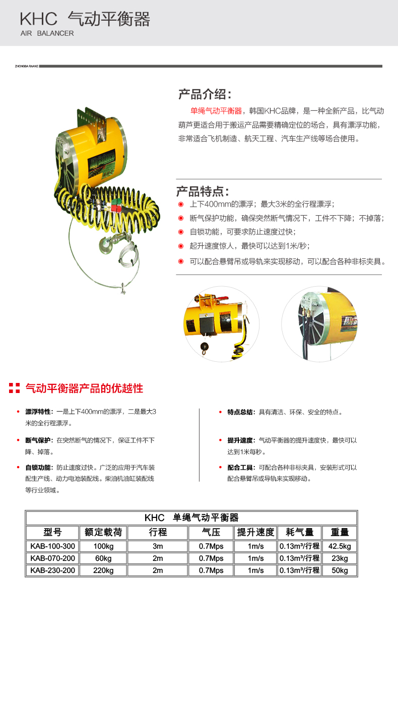 - KHC氣動(dòng)平衡吊的提升速度快,最快可以達(dá)到1米/秒。