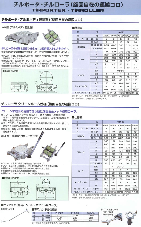 ●AW型TIRROLLER搬運小坦克采用輕量設(shè)計,鋁合金鑄造,搬運重物的效率更好。
