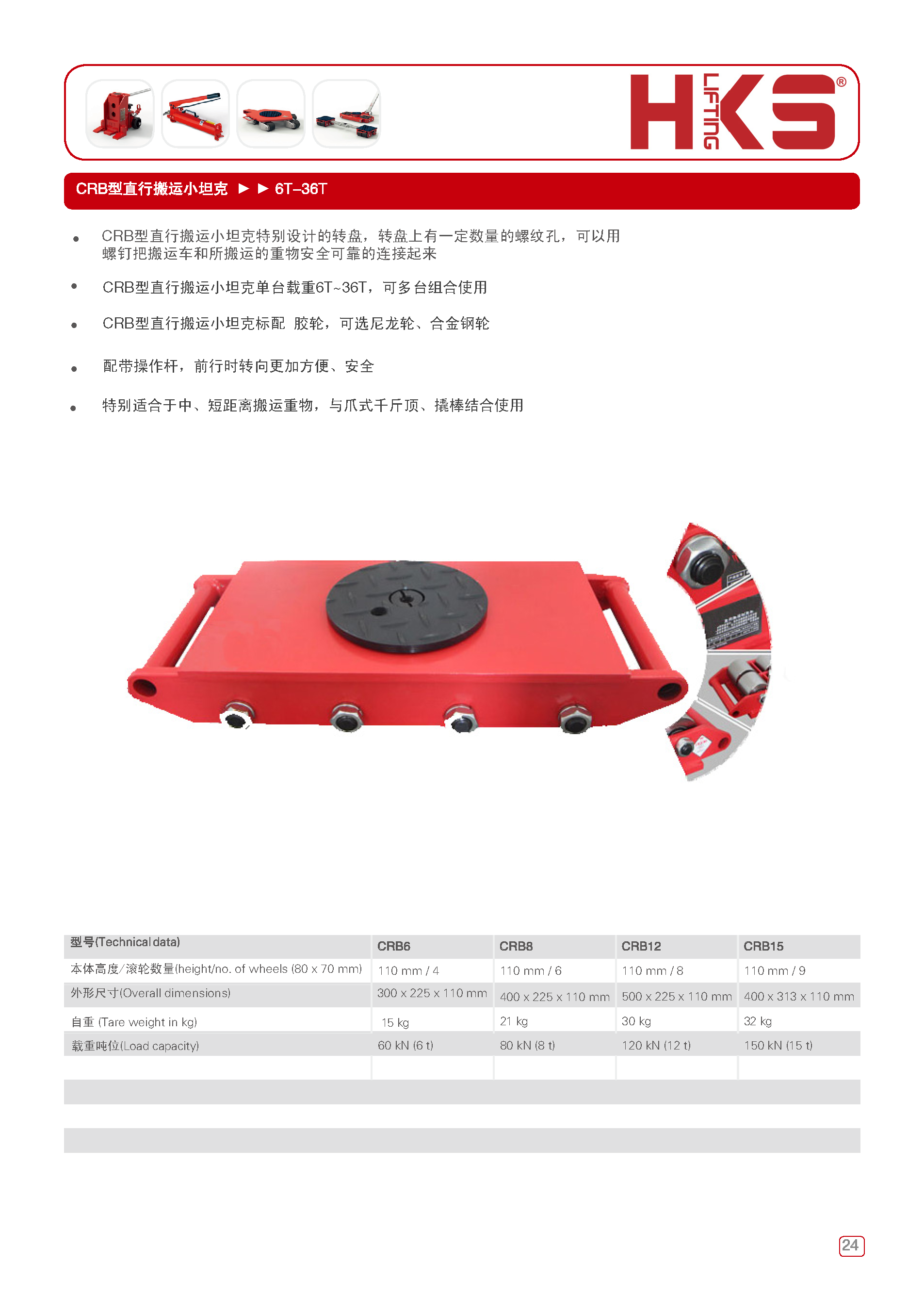 HKS-LIFTING艾馳楷時搬運工具涵蓋了直行搬運坦克車、轉(zhuǎn)向搬運坦克車、萬向搬運坦克車、手搖搬運坦克車、履帶搬運坦克車,載重噸位從2噸達(dá)千噸。