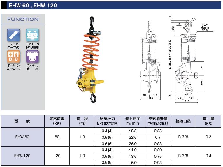 4.EHW氣動吊車系列配置有反向纏繞保護如果鋼索被拉出1.9米,系統(tǒng)使氣動馬達自動停止。