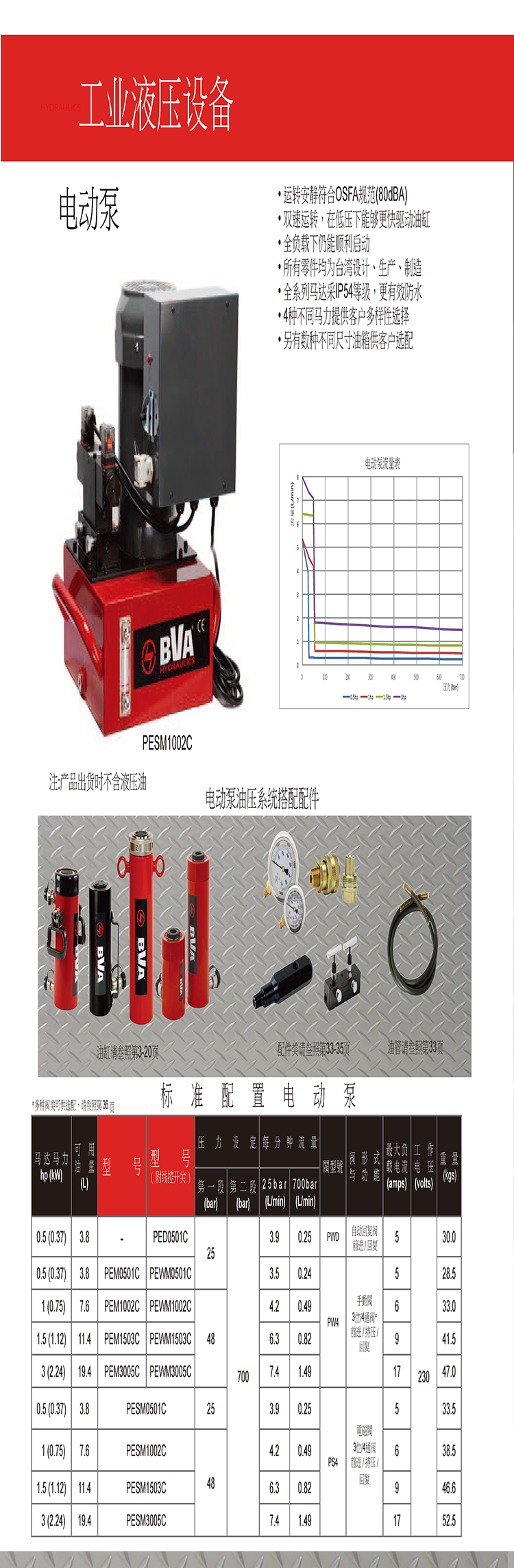 BVA泵類:SR05~SR10 BVA液壓擴張器,BVA法蘭分離器,PA1500~ PA7550 BVA金屬油箱氣動泵,PA600/PA600H BVA全方向操作式氣動泵,PA1500M BVA雙作用缸用氣泵,PA1500L/PA3801L BVA線控式氣動泵,P350~P1000 BVA雙速度鋁制手動泵,P1201~P8701 BVA雙速金屬油箱手動泵,P2301M~P8701M BVA雙作用缸手動泵,P240L BVA低壓手動泵,PEM0501C~PESM3005C BVA電動泵,PARD1701~PAR4003 BVA旋轉式泵,PG5505 BVAHONDA引擎汽油泵。
