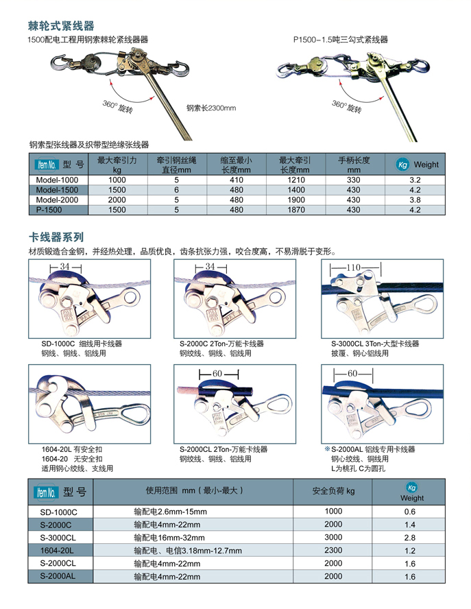 臺(tái)灣PAT NGK卡線器是電力、電信、鐵路電氣化架空線路施工及檢修中常用的握線工具。
